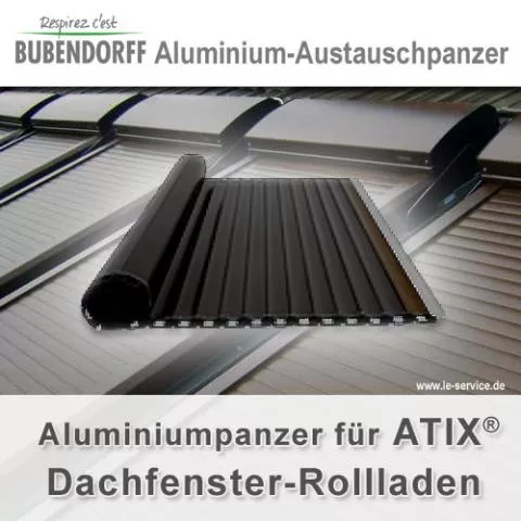 Panzer / Austauschpanzer mit Aluminium-Lamellen für den Bubendorff ATIX®-Dachfensterrollladen ROTO® und VELUX®. Original Ersatzteil Bubendorff. Dieser Lamellenpanzer ist passend für ATIX auf ROTO® und VELUX® Dachwohnfenstern (alle Größen). Einheitspreis für alle Fenster-Größen.