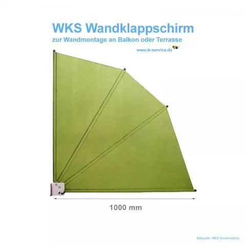 Wandklappschirm mit 1000 mm Schenkellänge klein und kompakt. Geeignet als perfekter seitlicher Sichtschutz und Sonnenschutz zum Ausklappen. Zur Wandmontage oder Nischenmontage auf Balkon oder Terrasse - eine platzsparende Alternative zur herkömmlichen Seitenmarkise.