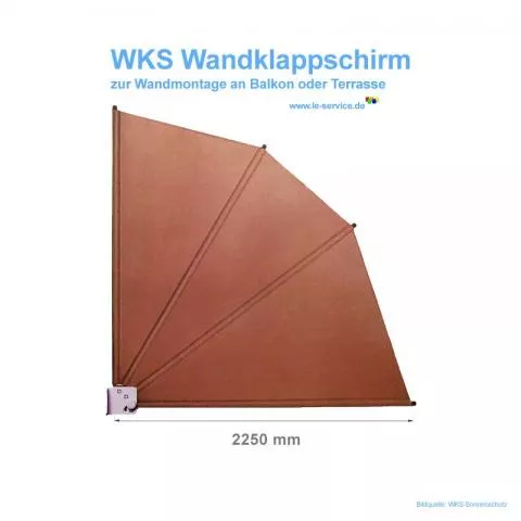 WKS Wandklappschirm 2,25m x 2,25m als perfekter Sicht- und Sonnenschutz auf Balkon oder Terrasse. Einfache Montage, stabil, langlebig.