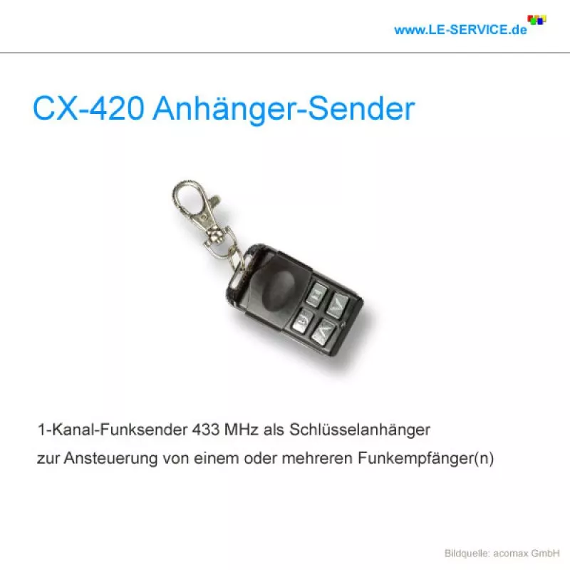 CX 420 1-Kanal-Sender Schlüsselanhänger zur Steuerung von einem oder mehreren ACOMAX Funkempfängern
