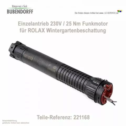 Funkmotor 230 V / 25 Nm Auf- / Abrollmotor für Bubendorff ROLAX Wintergartenbeschattung