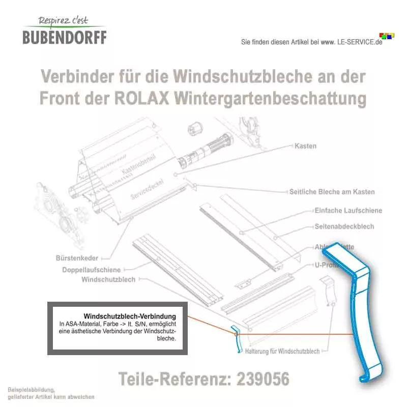 Verbinder für das Windschutzblech der ROLAX Beschattung