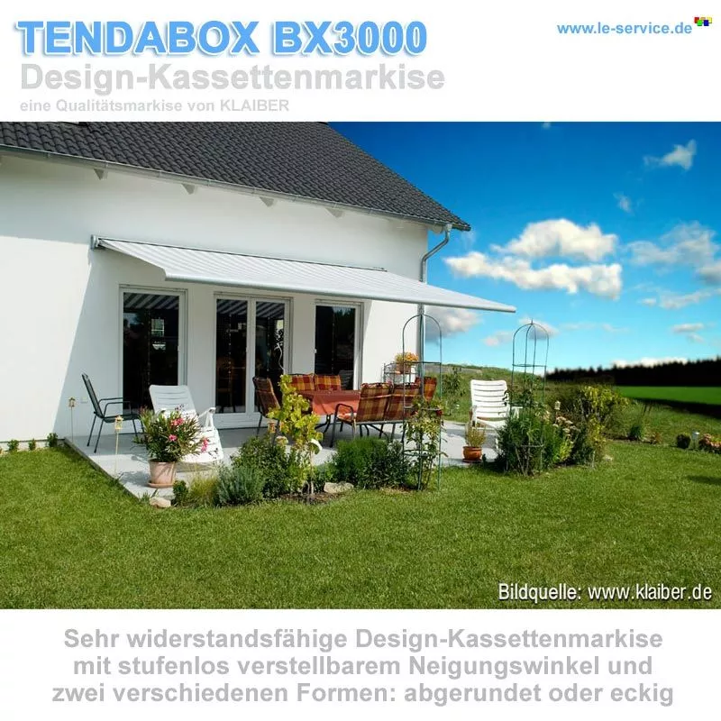 KLAIBERTENDABOX BX3000 Design-Kassettenmarkise mit ElektroantriebKassettenmarkise Tendabox BX3000 von KLAIBER mit abgerundeter oder eckiger Blende - Top-Preis-Leistungsverhältnis