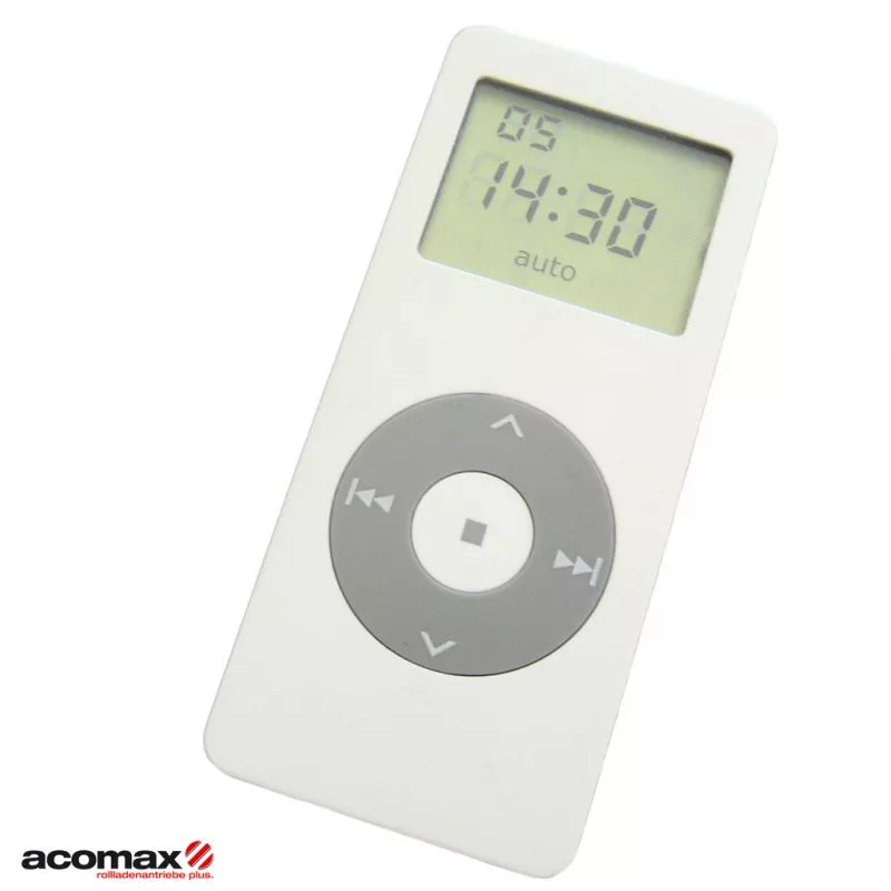 Funkschaltuhr 433 MHz. Funk-Rollladen-Zeitschaltuhr im Handsenderdesign mit Wandhalterung und Batterie. Einfache Programmierung der Fahrzeiten, Hand- und Automatikbetrieb, Zufallsgenerator für bis zu 15 Rollladen.